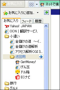 右の図、「巡回用」フォルダの「→」矢印を押すとフォルダの中のサイトが一気に全部タブで開きます。
