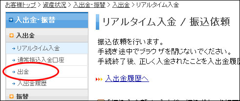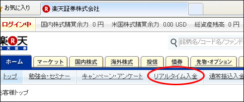 楽天証券は「三井住友銀行」「三菱東京UFJ銀行」「みずほ銀行」「ゆうちょ銀行」「ジャパンネット銀行」「セブン銀行」からでも同じような作業で資金移動が可能です。