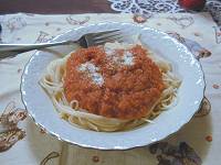 まずトマトソースですが、おそらく地で取れた物でしょう、フォークですくいやすいサイズに切ってある夏野菜の煮込みがたくさん入っていました。これが美味しかった!野菜は煮れば柔らかくなり、味を出す、そんな簡単な事なのにあえて感動してしまう位、美味しかったです。煮崩れていないし、こういうのを滋味というのでしょう、心の落ち着く味わいでした。