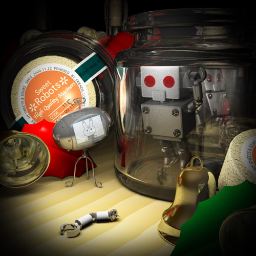 サンタハウスにて、組み立てが終わる前にビン詰めされてしまったロボちゃん。
