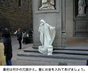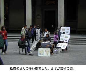 | 第4日目はフィレンツェ。イタリアでもっとも価値のある芸術の都と言われている。たしかにこの街には、古いものもあるが新しい芸術もきちんと存在する、そんな印象を受けた。 |