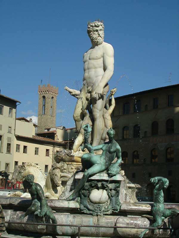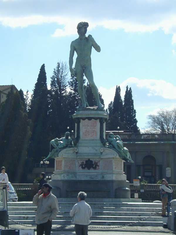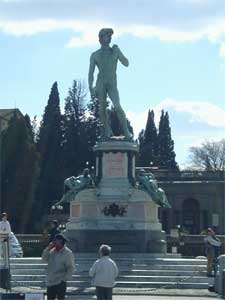 広場は丘の上にあり、中央にはミケランジェロのダビデ像が飾ってあった(もちろん模造)。