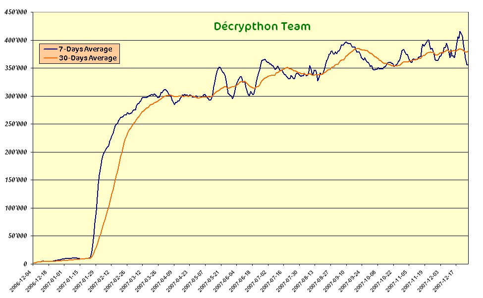 Deux millions de points et 5 000 résultats pour KerSamson! Two million points and 5,000 results for KerSamson! ![]() Avec à peu près la même production quotidienne qu'Allibe et psbg les machines de KerSamson occupent maintenant la troisième place de l'équipe et ont passé ces jours-ci la barre des deux millions de points et celle des 5 000 résultats. Un grand merci à KerSamson pour ôter à Allibe et psbg toute idée de lever le pied! Currently showing about the same daily production as Allibe and psbg KerSamson's machines are now ranking third in our team, passing the two million points and the 5000 results milestones these last days. Big thanks to KerSamson for preventing Allibe and psbg from any kind of relaxing! KerSamson for the team: |