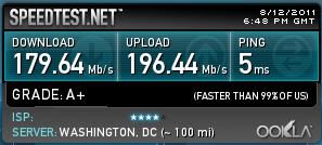----------------------------------------me at work- (pinging to Ashburn VA) 71.3 down, 61.2 up, up, 8ms ping Now (a bit of an upgrade since then)- ![]() edit- What in the heck do you need for 5 stars??? ![]() [Edit 1 times, last edit by pramo at Aug 12, 2011 7:03:51 PM] |