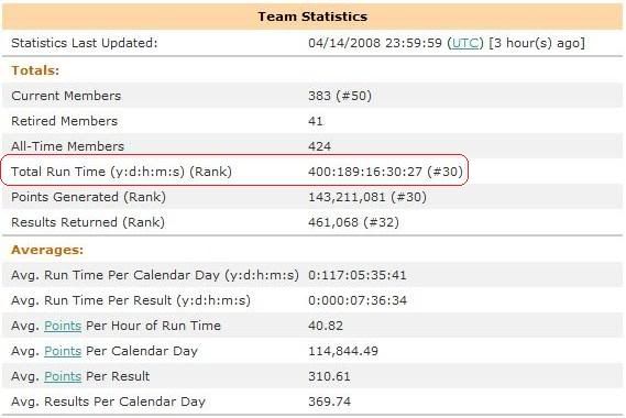 Check out the huge increase in the team stats since last night! asus_fan, dwknight along with drick78 are pulling some serious points yesterday.