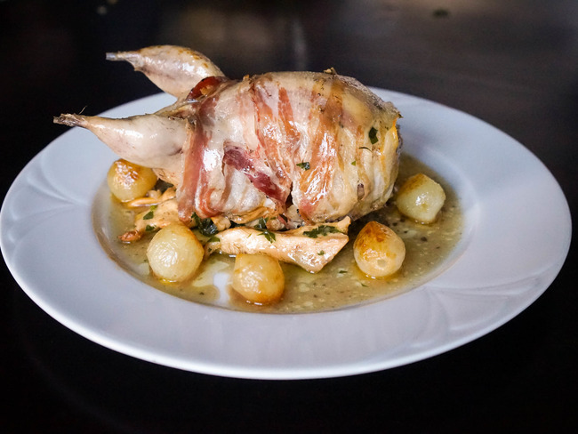 ----------------------------------------In France, we have an expression : "Quand le chat n'est pas là, les souris dansent". When the cat is not here, the mice are dancing. Wich means, when the chief is away, the others take advantage. Cooking Aujourd'hui : Cailles farcies au foi gras de canard . Contrairement à la recette en lien, je recommande de remplacer les champignons de Paris par des cèpes. Pour flamber les cailles au cognac avant de les farcir, nous pouvons utiliser celui que nous voulons, que c'est juste pour rajouter un peu de subtilité au plat. En accompagnement, si nous privilégions l'esthétique, de petites pommes de terre dorées comme sur la photo. Si nous préférons la gourmandise, comme dans la recette, une purée avec un puits que nous remplissons de jus de cuisson. En vin, un Chinon rouge, ou en blanc, un Pinot Gris d’Alsace. ![]() Recette / recipe . Translator Today: Quails stuffed with duck fat . Unlike the linked recipe, I recommend replacing mushrooms of Paris with ceps. To flambé quail cognac before stuffing, we can use the one we want, it's just to add a little subtlety to the dish. As an accompaniment, if we favor aesthetics, small golden potatoes as in the picture. If we prefer gluttony, as in the recipe, a puree with a well that we fill with drippings. In wine, a red Chinon, or in white, a Pinot Gris from Alsace. Bon appétit ! ![]() [Edit 2 times, last edit by Former Member at Jun 11, 2019 12:53:06 AM] |