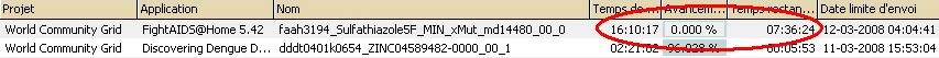 ----------------------------------------thanks for your answer. I came quickly to my remote location where my "powerful" host is and I found a "non-responding" boinc manager. "Log-off - logon" did not bring any improvement. I had to restart the system and after WU reporting I have around 3 pages of WUs in error. Some WUs brought boinc up-side-down, I don't know why and which one ! I have no idea if I should suspect HCC or FAAH ! Finally only DDDT WUs have been performed correctly on this particular host during the last 2 or 3 days. The reporting to WCG stopped and it seems that boinc manager crashed after no computable WUs (in this case DDDT) were available. It is the first time that such an event occurred (since mid of August 2007). It is the double Quad-Xeon system, 4GB RAM running WinXP 64. The system is currently only devoted to WCG. Perhaps, could you find something ? If necessary, you can contact me directly, Jean has now my direct contact data ! Cheers, |