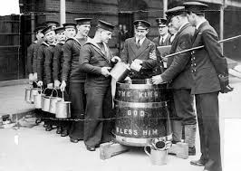 ----------------------------------------![]() Also have one like this approx 1ltr Jolly Jack at Tot Time gathered round the rum fanny chiefie keeping an eye on things Jack Dusty and the Tanky deal out the rum ration which was let down with water The rum fanny on the mess table killick of the mess dishes the tots out ![]() I am thinking your good purchase was empty Tony, a bottle of Pussers costs about 30 Quid today Gulpers / Sippers / Sandy Bottoms/Neaters/Rum Rats 3 âwetsâ (a tiny, tiny sip) equalled 1 sip. 3 sips equalled one gulp. 3 gulps equalled one tot. Wets, sippers and gulpers amounts your mate could take from your tot in return for some favour he had done for you. Sandy Bottoms you've had the whole lot Neaters self explanatory drank before dilution . Rum rats those jolly jacks who by hook or crook obtained extra Rum . ---------------------------------------- [Edit 6 times, last edit by densnaps at Oct 12, 2012 12:47:10 PM] |