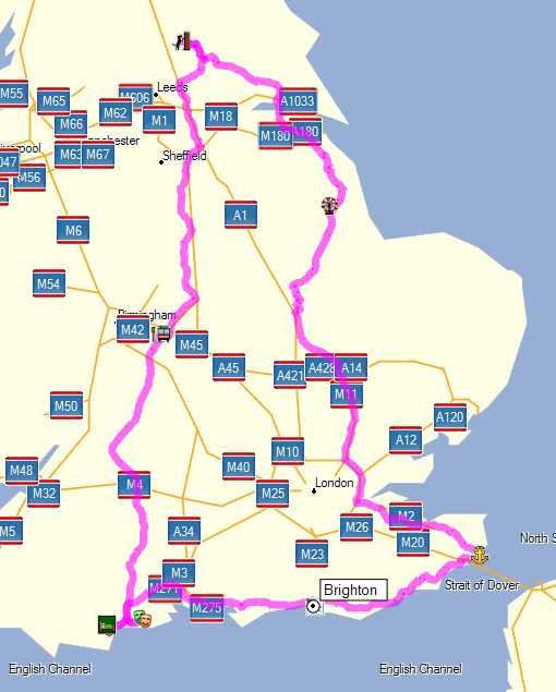 ![]() Dover - East Kirkby (Air Museum) Myton on Swale several days visiting York etc. and walk with Ted and dog Coventry (Transport Museum) New Milton - Poole and home via Brighton Heaven and Hadrian's wall will have to wait until an improbable second chance pops up - you never know ![]() |