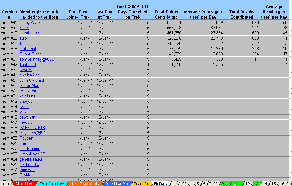 Fiend; I'm locked into an "In House Challenge" currently and looking at a RunTime Challenge for February; after that I'm hoping to slip back to Docking for a few weeks before the Easter Trek @ Base Camp! I'll try to drop in at TPR for a few dumps!!! You're welcome to drop by anytime you want!!! Thnk I'll be sticking to Docking for the moment..... Aiming for 5 million by the end of March. Also aiming for #1 TPR Docking Cruncher Rig with my Phenom X6...... due to overtake DoubleTop in about a months time..... AFter 5 million will switch one of my crunchers over to the Serious Crunchers cause if that is OK? |