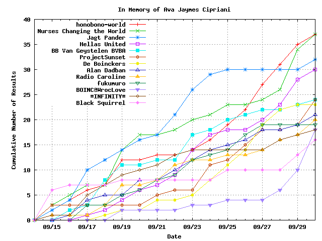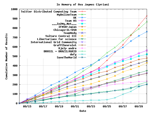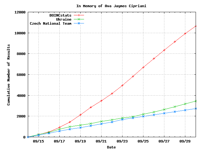 ---------------------------------------- There are now 75 teams attending and it was 1115 work units returned the first day of the challenge. ![]() |