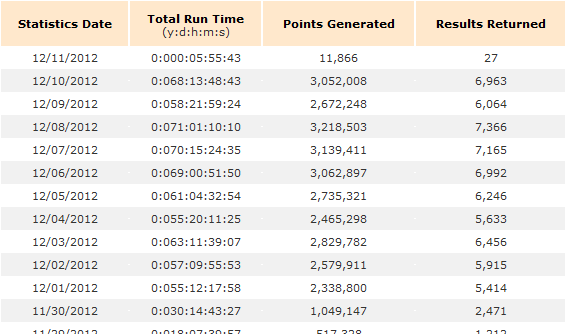 ----------------------------------------I got into Folding@Home a couple of years ago and got hooked with all of the excitement of using typical hardware for scientific research. Next thing you know, I've got a home made rack and 10 computers around the house. There are quad core LGA 775 boards through hexa core X58 boards and NVIDIA 9800 GPUs to 590s, and a couple of AMD rigs thrown in the mix in the last couple of months. The introduction of GPU on HCC got me motivated to get the 7870 and 7970 to see first hand what AMD GPUs could do on crunching. Well, with 95% of my resources currently going to HCC, this is what is has been producing so far this month (Note: dip on the 9th was a power outage while I was at work.). ![]() EDIT: Figured I'd add a pic of the rack. Everybody seems to get a kick out of it. ![]() [Edit 1 times, last edit by Former Member at Dec 11, 2012 3:12:27 AM] |