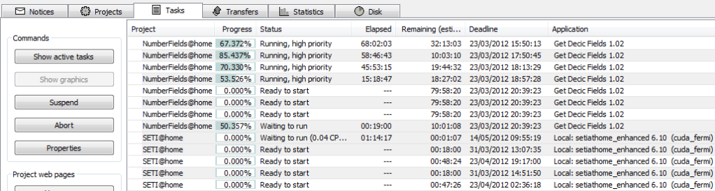 ----------------------------------------Some have reported resource deployment issues with 7.0.21 on the developer mail list [overcommitting and underutilizing] and reverting to 7.0.20. There's a test version .22 but expecting a new one very soon to test... [I'm monitoring in main to confirm the development remains compatible with WCG's 700 server version]. More scheduling changes to come. --//-- edit: A comment on the developer mail list: Basically, I'm in the same position as http://i1148.photobucket.com/albums/o562/R_Haselgrove/HPblocksGPU.png except that I've downgraded to v7.0.20 to get the GPU running again. Use 7 entirely at your own risk / or when an other non-WCG project requires a 7 release. No guarantee it works at WCG. Note that the adoption path currently has permanently skipped 6.12. Nothing there, but the Notices tab if you like desktop delivery of news and important client alerts [but be aware, some projects spam that box with bi-daily challenge information] [Edit 1 times, last edit by Former Member at Mar 22, 2012 4:27:12 PM] |