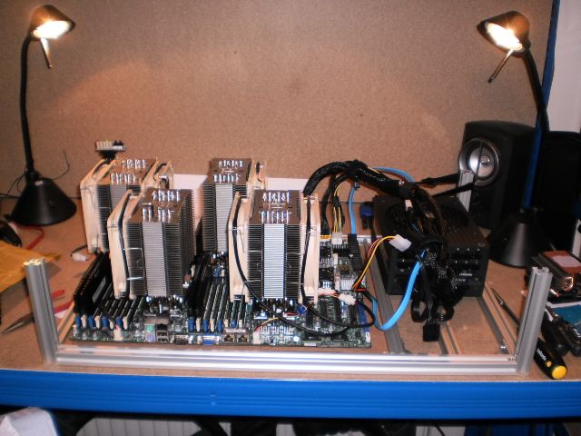 Check this guy out for custom cases: Nice, I've been toying with the idea of building one out of the same Aluminium extrusion as the frame but with perspex as the sides etc.http://richchomiczewski.wordpress.com/home/trays/ I've seen a 4P in one up close and the build quality is excellent! I have some pics around somewhere using the Supermicro board like yours and Noctua coolers for the chips. Will try to locate and post if you would like Congrats on the build- 4P's do great for crunching and folding! ![]() I do like the ones made in the link, shame he is not making the size I'll need... Thanks for the link!