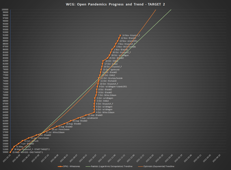 1000 Little Mermaid 27 May 2000 Mike.Gibson 9 June 3000 Sirius B 22 June 4000 daka 5 July 5000 daka 16 July 6000 HK-Steve 27 July 7000 HK-Steve 7 August 8000 GunZi 17 August 9000 pututu 27 August 10000 HK-Steve 6 September 11000 HK-Steve 17 September 12000 HK-Steve 27 September 13000 BladeD 6 October 14000 HK-Steve 15 October 15000 yoerik 25 October 16000 BladeD 26 October 17000 GunZi 27 October 18000 awpollak 2 November 19000 Richard3 7 November 20000 Richard3 10 November 21000 awpollak 14 November 22000 Richard3 19 November 23000 Krzysztof_F 23 November 24000 alanb1951 28 November 25000 GunZi 2 December 26000 Richard3 6 December 27000 puigm 10 December 28000 Richard3 15 December 29000 Richard3 21 December 30000 cehunt 30 December 31000 puigm 9 January 32000 Richard3 18 January 33000 Krzysztof_F 28 January 34001 Krzysztof_F 7 February 35000 alanb1951 17 February 36000 Richard3 26 February 37000 Mike.Gibson 8 March 38000 alanb1951 18 March 39000 HK-Steve 27 March 40000 BladeD 6 April 41000 ThreadRipper 14 April 42000 Mike.Gibson 19 April 43000 Krzysztof_F 22 April 44000 BladeD 25 April 45000 GunZi 30 April 46000 Krzysztof_F 5 May 47000 yoerik 10 May 48000 GunZi 16 May 49000 alanb1951 21 May 50000 MJH333 25 May 51000 Krzysztof_F 28 May 52000 GunZi 31 May 53000 BladeD 7 June 54000 cehunt 13 June 55000 Hans Sveen 23 June 56000 BladeD 5 July 57000 Mike.Gibson 17 July 58000 Hans Sveen 26 July 59000 BladeD 6 August 60000 BladeD 18 August 61000 BladeD 28 August 62000 rendition54 9 September 63000 BladeD 21 September 64000 Mike.Gibson 4 October 65000 wildhagen 4 October 66000 wildhagen 4 October 67000 Krzysztof_F 4 October 68000 EA6LE 5 October 69000 wildhagen 5 October 70000 Mike.Gibson 7 October 71000 BladeD 8 October 72000 BladeD 8 October 73000 alanb1951 7 October 74000 Krzysztof_F 10 October 75000 Richard3 11 October 76000 Grumpy Swede 11 October 77000 EA6LE 13 October 78000 BladeD 14 October 79000 Igelwurst 15 October 80000 Krzysztof_F 16 October 81000 EA6LE 17 October 82000 EA6LE 18 October 83000 BladeD 25 October 84000 wildhagen 28 October 85000 Krzysztof_F 30 October 86000 BladeD 1 November 87000 Atila Cortada 5 November 88000 Krzysztof_F 7 November 89000 alanb1951 10 November 90000 BladeD 12 November 91000 Krzystof_F 14 November Who will report the first 92,000? Possibly 17 November. The latest interval is up to 2.4833 days. The 10 interval average is up to 2.8349 days. . I haven't seen any batches with over 1000 units again this time. We still need more information on what happens next. The forecasting will be unable to restart without it. Mike |