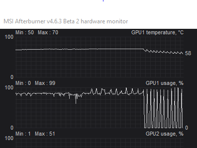 Just so it is shown by the same thing, here is a snip from MSI afterburner. The first part is running folding at home. The middle part where there are small spikes upwards is when boinc found another beta gpu unit before I noticed and paused folding at home. The last part is with just the beta gpu unit and shows what I was referring to.
