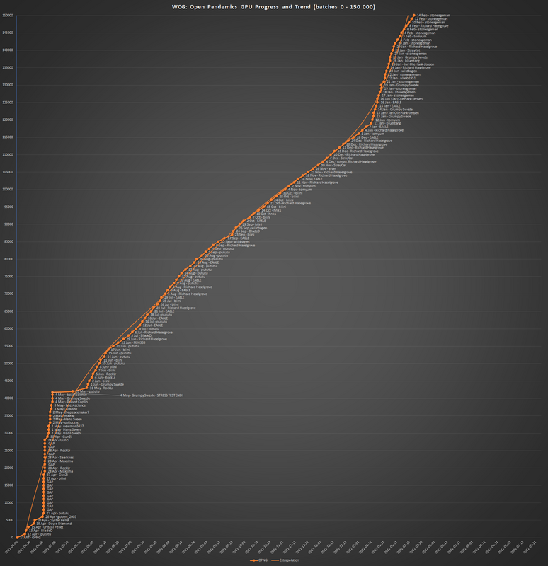 ----------------------------------------As I explained in the OPN1 CPU progress thread, I am preparing for a move, which is why I have been absent for a while. But now I have new graphs. Batches 0-50000, 50000-100000, 100000-150000 and 0-150000 complete overview. ![]() ![]() Join The International Team: https://www.worldcommunitygrid.org/team/viewTeamInfo.do?teamId=CK9RP1BKX1 AMD TR2990WX @ PBO, 64GB Quad 3200MHz 14-17-17-17-1T, RX6900XT @ Stock AMD 3800X @ PBO AMD 2700X @ 4GHz |
