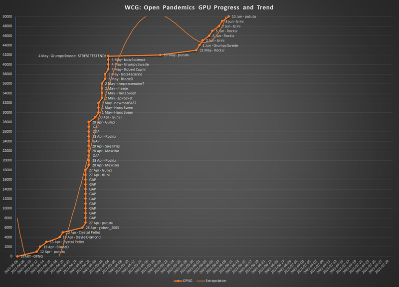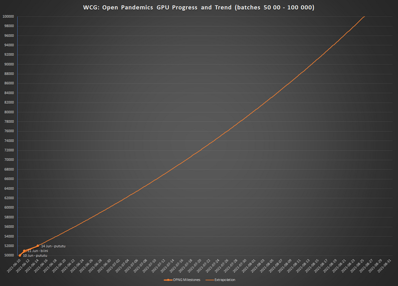 Woohoo, congrats on reaching batch 50 000, and to pututu for reporting on it first! Should we continue in this chart to 100 000 or start a new one from 50k to 100k? ![]() How does it scale if we continue to 100k? E: maybe new chart, since the trend on the 0-50k is "bit" off compared to current situation Kiitos for the input, I completely agree! :) Due to the Gaps in the 0-50000 chart, let's go for a new chart. Here it is: Congrats to biini and pututu for the 51000 and 52000 batches respectively! ![]() ![]() Join The International Team: https://www.worldcommunitygrid.org/team/viewTeamInfo.do?teamId=CK9RP1BKX1 AMD TR2990WX @ PBO, 64GB Quad 3200MHz 14-17-17-17-1T, RX6900XT @ Stock AMD 3800X @ PBO AMD 2700X @ 4GHz |