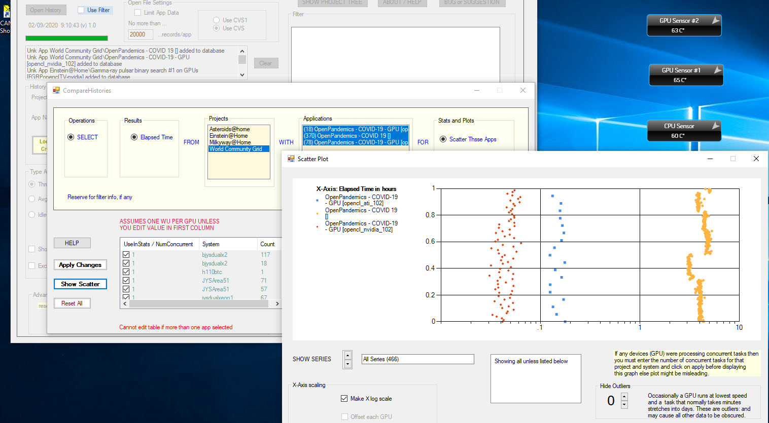----------------------------------------A single Ubuntu NVidia but 100+ for Windows 22 RX570 type for Ubuntu but only 3 RX570 type for Windows. Strange mix. Scatter plot show the improvement over the CPU work units. ![]()