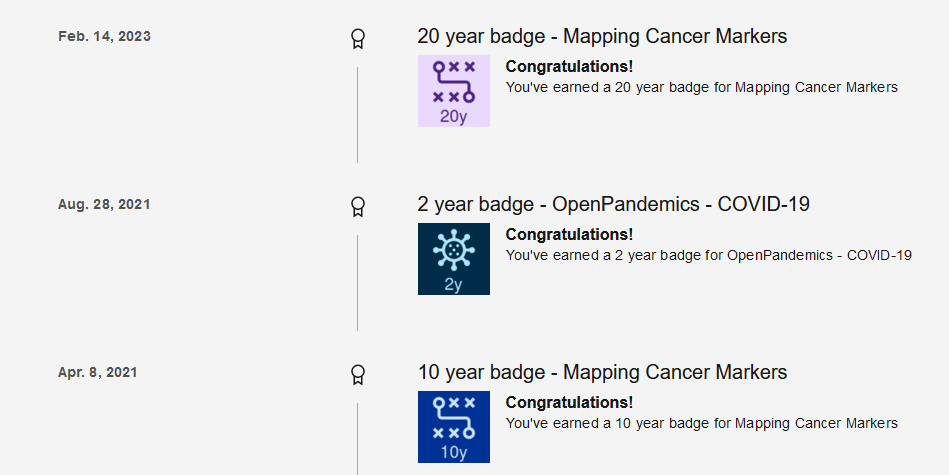 Congrats on your badges. There are 200 year badges to be had, so keep going. |