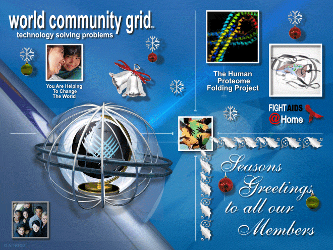 World Community Grid wishes everyone a very joyous and happy holiday season. Without your help, we would not be running the two projects: Human Proteome Folding and FightAIDS@Home. It is our fondest hope that on some future holiday, the world will be a much better place because of what we are doing on World Community Grid.